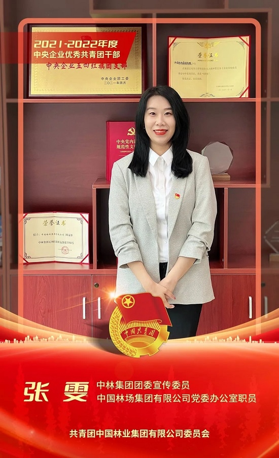 张雯同志现任中林集团团委宣传委员、中国林场集团有限公司党委办公室职员。她始终牢记初心使命,在洋溢着青春热血的广阔舞台上,以实际行动来检验和证明自己的信念。在共青团工作中,张雯主动协助团委书记,紧紧围绕党团青年工作、国储林建设、疫情防控、生态产品价值实现等方面工作,组织带领各级团组织先后推出“学习二十大”“建团百年”“青年典型”“捐书助学”“青春悦读”“不负韶华 抗疫有我”等系列宣传或主题报道,对内讲好故事,对外传递声音,激励引领广大团员青年在奋进新征程中建功立业。