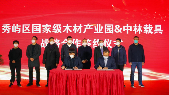 2023年1月1日,新年伊始,中林集团所属福州国林林产品有限公司与福建省莆田市秀屿区国家级木材产业园签订CFPC数字化木托盘项目战略合作协议,旨在围绕国家“双碳战略”,打造央地合作共赢的绿色示范工程。