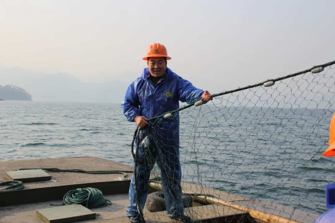 安全帽、雨衣雨裤、防水胶靴……这是中央企业先进基层党组织、中林千发公司捕捞一队党支部书记、队长叶志清工作的标配行头。在千岛湖的晨曦中,这样一幅熟悉的身影,一晃已近四十年。