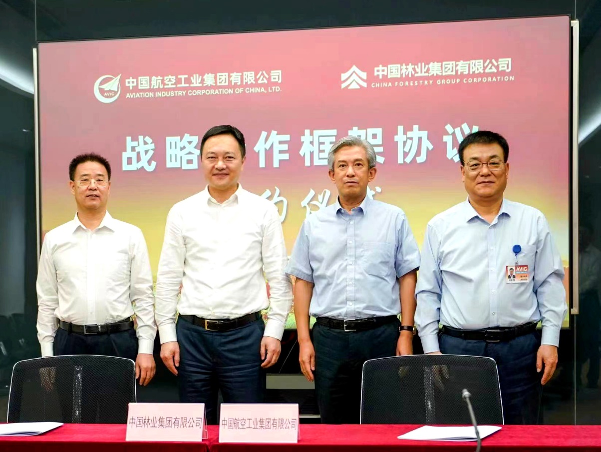 9月6日,中国林业集团有限公司与中国航空工业集团有限公司在京签署战略合作协议。中林集团党委书记、董事长余红辉,航空工业党组书记、董事长谭瑞松出席并见证签约。中林集团党委委员、副总经理李留彬,航空工业党
