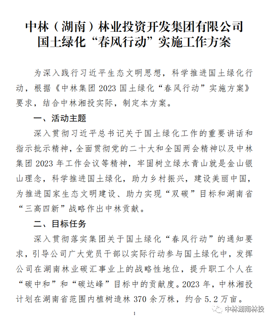 中林湘投将以本次活动为起点,持续推进国土绿化“春风行动”,计划2023年在湖南省范围内植树造林370余万株,约合5.2万亩,以实际行动增林扩绿,为绿水青山美丽中国建设贡献力量。