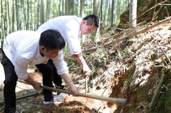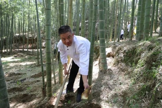 “笋出徽州六邑,以问政山者味尤佳”。活动中,大厨们前往问政山现场,飞舞着锄头,探寻“山中珍宝”,满载而归。